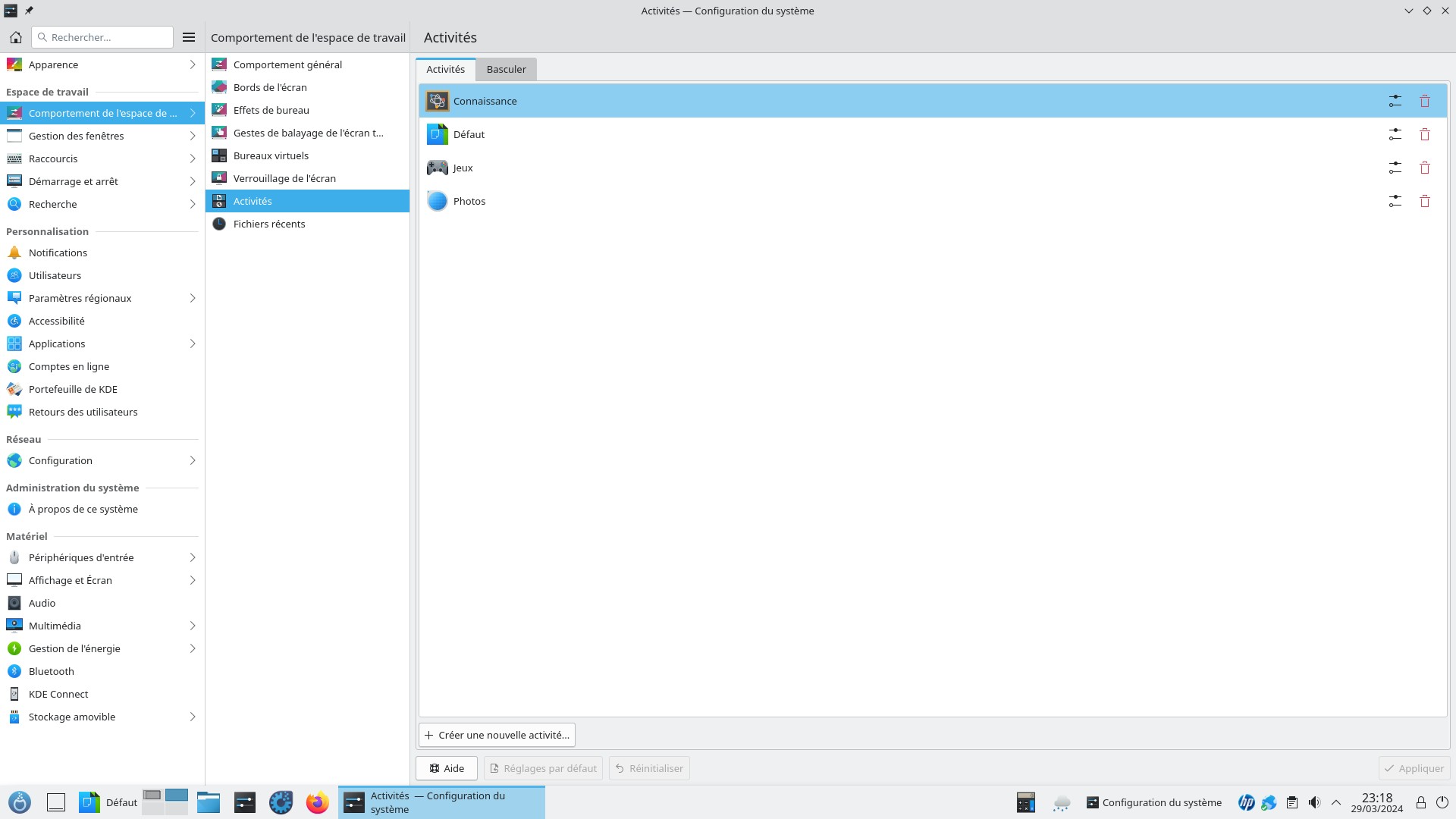So here we are, this Friday evening the bug is back! I used LibreOffice and a few other programs without any problem. Then I used Flightgear for my main activity and a network game on Steam for my 'Games' activity. I disable 3D to play big games with [Alt + Shift + F12]. The bug appeared when I activated 3D. The Steam window was upside down, as in my first screenshot. I had taken a screenshot, but forgot to save it. Changing the virtual desktop doesn't solve the bug. This time the key combination [Alt + Shift + F12] didn't solve the bug. But [Ctl/Alt/Bksp/Bksp] does! Thanks for the info! I think there's a problem with the activities on my Plasma 5.27.10 version. Here's a screenshot of my activities which have four virtual desktops each: https://www.mageialinux-online.org/upload/activite.jpg First of all, I find it strange that you can't select the activities below the first one with the mouse. I almost always use the "default" activity. Steam was on the "Games" activity Google Earth was open on the "Knowledge" activity The bug appeared when I activated the 3D effects again. As long as I don't use big programs like Flightgear and Steam games, there's no bug. Remember that if I delete the 3 extra activities to leave only the "Default" activity, there's no more bug. That's it for now. :-) Translated with DeepL.com (free version)